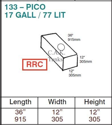 Home / Water Tanks Product Description Suitable for drinking water, waste or toilet discharge.A strong and reliable water storage tank for caravans, motorhomes, campers and specialist vehicles. Moulded in black polyethylene to the highest specifications for drinking water use.One piece, seam free moulding. No welded joints that can crack prematurely. Our tanks will not leak, split, rust or corrode. Designed for the safe, reliable storage and transport of drinking water and grey or black waste-water. Our tanks are black to prevent the growth of algae. Your fresh water will stay fresher for longer with no aftertaste. Fit under the chassis or anywhere inside your vehicle.We offer a large variety of shapes and sizes.Our tanks can be customised with water gauges, water level sensors, nut in fittings, drain taps, valves, hatches, submersible pump adaptors etc. We carry a wide range of connectors and fittings for you to install connections where you want for whatever your intended use of the tank is. Please see our Water Tanks Accessories section for additional nut in fittings. Specifications Brand C.A.K. Tanks Condition New Product Code CAK-133R Weight 6.9kg Customer reviews No reviews left yet Write A Review Sort byMost RecentTop Rated Description Suitable for drinking water, waste or toilet discharge.A strong and reliable water storage tank for caravans, motorhomes, campers and specialist vehicles. Moulded in black polyethylene to the highest specifications for drinking water use.One piece, seam free moulding. No welded joints that can crack prematurely. Our tanks will not leak, split, rust or corrode. Designed for the safe, reliable storage and transport of drinking water and grey or black waste-water. Our tanks are black to prevent the growth of algae. Your fresh water will stay fresher for longer with no aftertaste. Fit under the chassis or anywhere inside your vehicle.We offer a large variety of shapes and sizes.Our tanks can be customised with water gauges, water level sensors, nut in fittings, drain taps, valves, hatches, submersible pump adaptors etc. We carry a wide range of connectors and fittings for you to install connections where you want for whatever your intended use of the tank is. Please see our Water Tanks Accessories section for additional nut in fittings. Reviews No reviews left yet Write A Review Sort byMost RecentTop Rated Attributes Brand C.A.K. Tanks Condition New Product Code CAK-133R Weight 6.9kg Delivery & Returns Customer Reviews PICO TANK & RED CAP Product Code CAK-133R CAK-133R £144.79 Login to add this product to your wishlist.