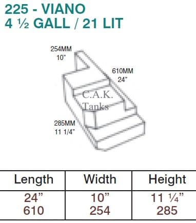 Home / Water Tanks Product Description Suitable for drinking water, waste or toilet discharge. A strong and reliable water storage tank for caravans, motorhomes, campers and specialist vehicles. Moulded in black polyethylene to the highest specifications for drinking water use. One piece, seam free moulding. No welded joints that can crack prematurely. Our tanks will not leak, split, rust or corrode. Designed for the safe, reliable storage and transport of drinking water and grey or black waste-water. Our tanks are black to prevent the growth of algae. Your fresh water will stay fresher for longer with no aftertaste. Fit under the chassis or anywhere inside your vehicle. We offer a large variety of shapes and sizes. Our tanks can be customised with water gauges, water level sensors, nut in fittings, drain taps, valves, hatches, submersible pump adaptors etc. We carry a wide range of connectors and fittings for you to install connections where you want for whatever your intended use of the tank is. Please see our Water Tanks Accessories section for additional nut in fittings. Specifications Brand C.A.K. Tanks Condition New Product Code CAK-225 Weight 3kg Customer reviews No reviews left yet Write A Review Sort byMost RecentTop Rated Description Suitable for drinking water, waste or toilet discharge. A strong and reliable water storage tank for caravans, motorhomes, campers and specialist vehicles. Moulded in black polyethylene to the highest specifications for drinking water use. One piece, seam free moulding. No welded joints that can crack prematurely. Our tanks will not leak, split, rust or corrode. Designed for the safe, reliable storage and transport of drinking water and grey or black waste-water. Our tanks are black to prevent the growth of algae. Your fresh water will stay fresher for longer with no aftertaste. Fit under the chassis or anywhere inside your vehicle. We offer a large variety of shapes and sizes. Our tanks can be customised with water gauges, water level sensors, nut in fittings, drain taps, valves, hatches, submersible pump adaptors etc. We carry a wide range of connectors and fittings for you to install connections where you want for whatever your intended use of the tank is. Please see our Water Tanks Accessories section for additional nut in fittings. Reviews No reviews left yet Write A Review Sort byMost RecentTop Rated Attributes Brand C.A.K. Tanks Condition New Product Code CAK-225 Weight 3kg Delivery & Returns Customer Reviews VIANO Fresh or Waste Product Code CAK-225 CAK-225 £105.70 Login to add this product to your wishlist.